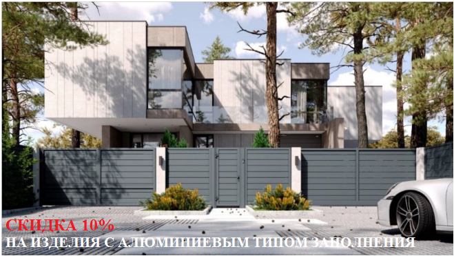 При покупке въездных ворот, калиток, заборных секций (в т.ч. и нового продукта, заборных секций Light) с алюминиевым типом заполнения розничному покупателю предоставляется дополнительная скидка в размере 10%.